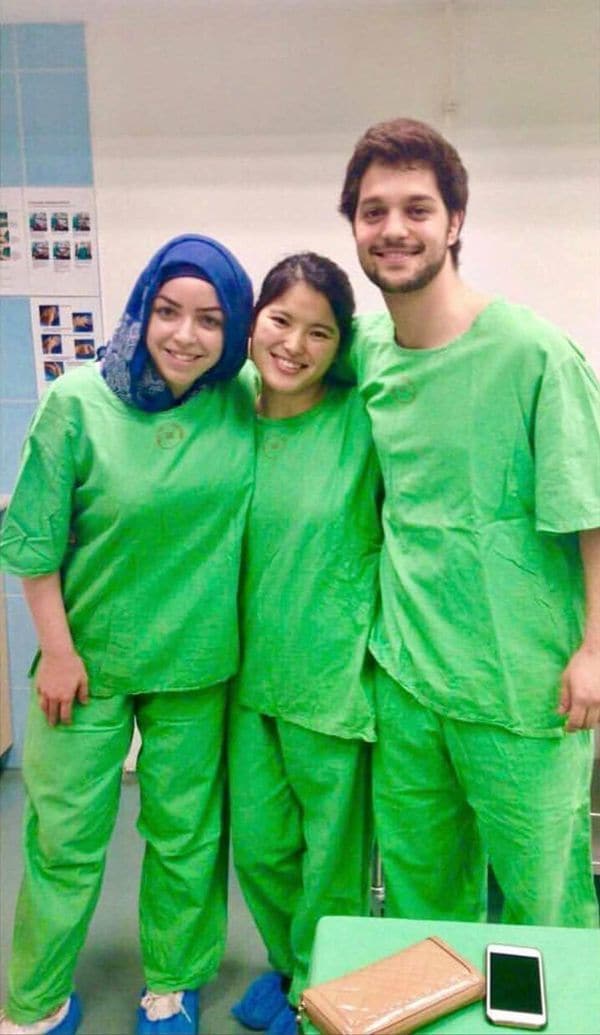 吉田いづみさん(中央)。ハンガリーでの病院実習の光景。写真提供=吉田いづみ