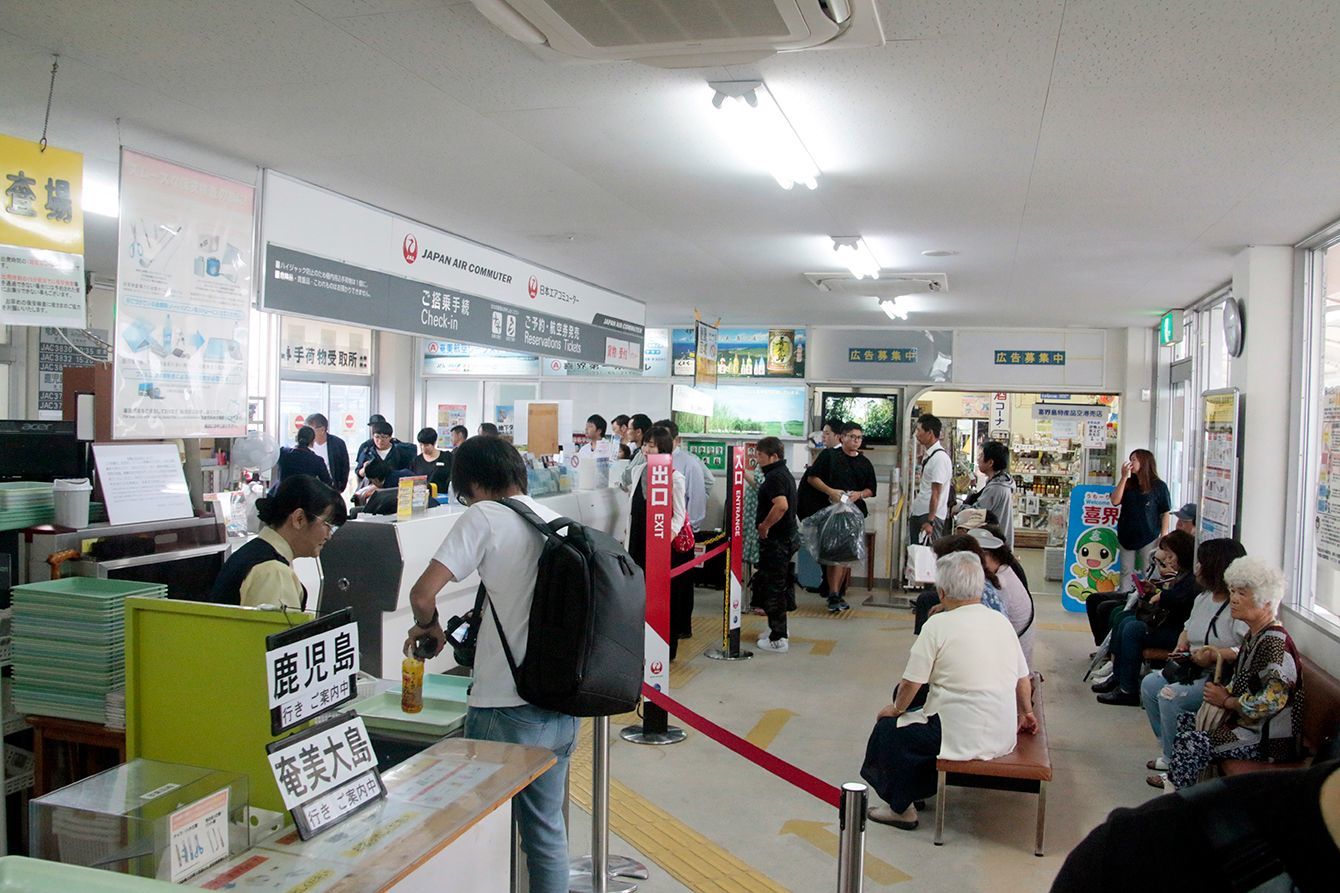 喜界空港のターミナルビルは、見渡せば全ての施設が視界に入る