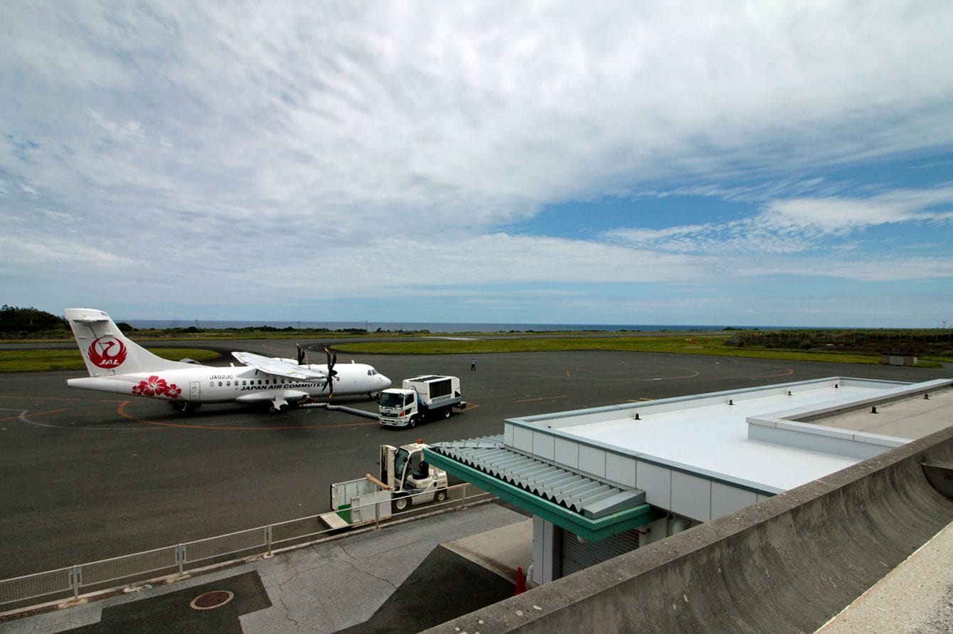 徳之島空港で翼を休める日本エアコミューターのATR42‐600型機