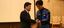 社員の士気を高める優秀社員表彰制度。社長が賞状を手渡し、本人の健闘ぶりをねぎらう。