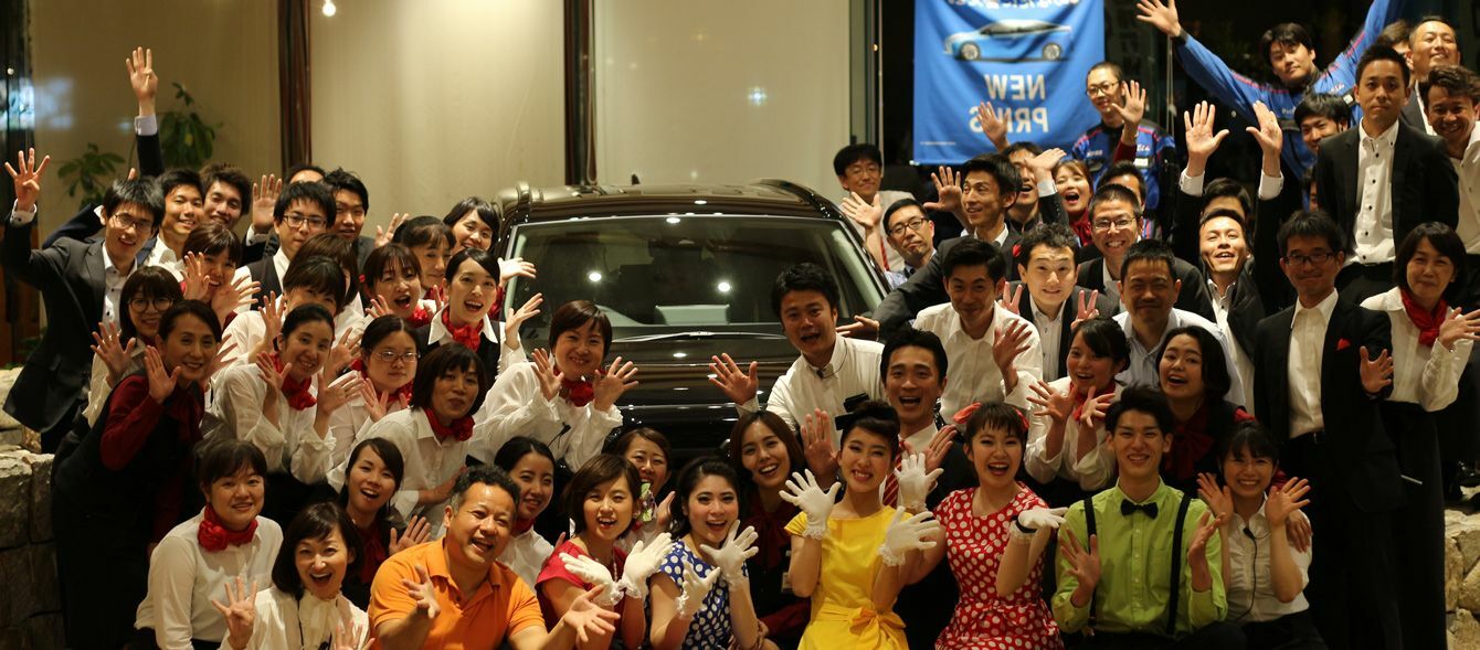 社員が自らのアイデアで新車発表会を演出。営業、エンジニアなどが一体となって、お客様に新車のよさを伝える工夫をしている。