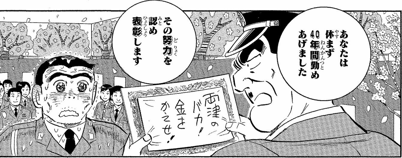 40年間の連載を一度も休まなかった秋本先生と両さん(200巻「40周年だよ全員集合の巻」)