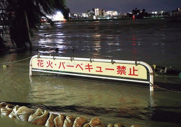 水が溢れた二子玉川。台風が去った後も警戒を緩めるな!(時事通信フォト=写真)