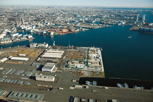 アメリカ軍が今も占領する港湾施設「ノースピア(横浜ノース・ドック)」。(時事通信フォト=写真)