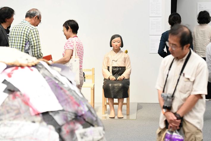 展示が再開された国際芸術祭「あいちトリエンナーレ2019」の「表現の不自由展・その後」=2019年10月11日、名古屋市東区の愛知芸術文化センター[代表撮影]