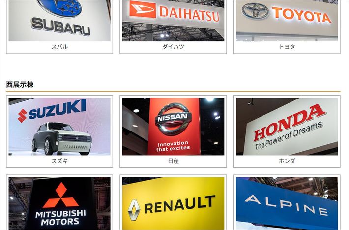 出展した主な自動車メーカー(東京モーターショーのウェブページ)