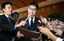 安倍晋三首相に辞表提出後、記者団の質問に答える河井克行法相(中央)=2019年10月31日、首相官邸