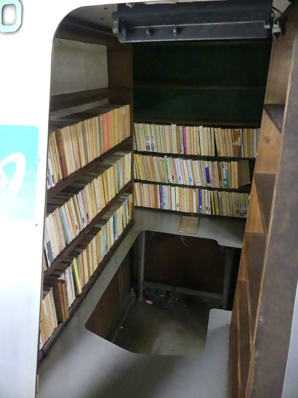 書棚の内部。テーブルをくり抜き、周りに板を張っている