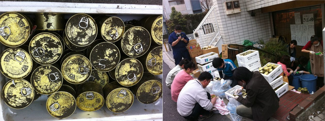 被災した石巻の缶詰工場を東京・経堂にとりよせて手洗いし、義援金と引き換えに配った。