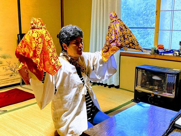 オシラサマアソバセの実演をしてくれる松田さん