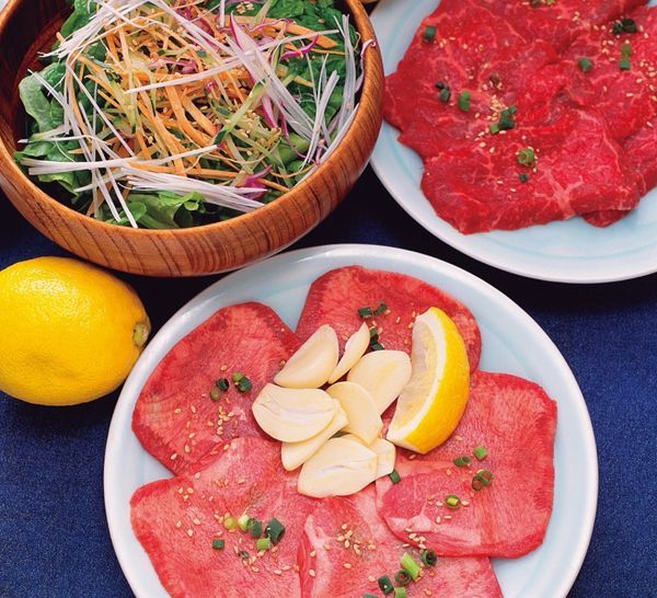 炭水化物は頼まず、牛タン塩や、牛ロースなどの赤身肉を中心に頼む。サラダやサンチュ、キムチなど野菜もしっかり摂取しよう。(Getty Images=写真)