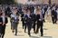「桜を見る会」で走る安倍晋三首相(中央)=2019年4月13日、東京都新宿区