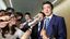 「桜を見る会」中止について、記者団の質問に答える安倍晋三首相(右)=2019年11月13日午後
