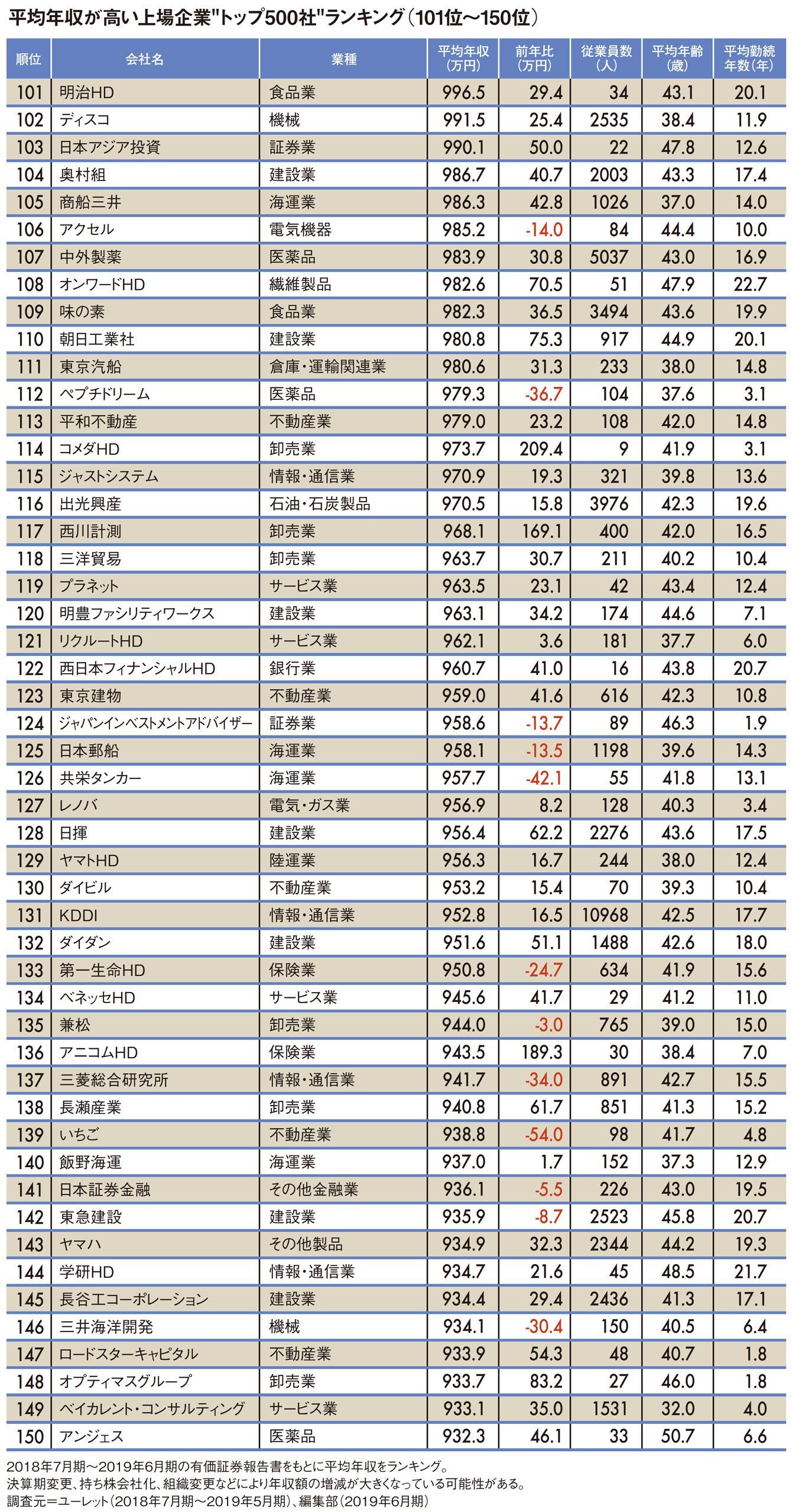 平均年収が高い"トップ500社"ランキング2019