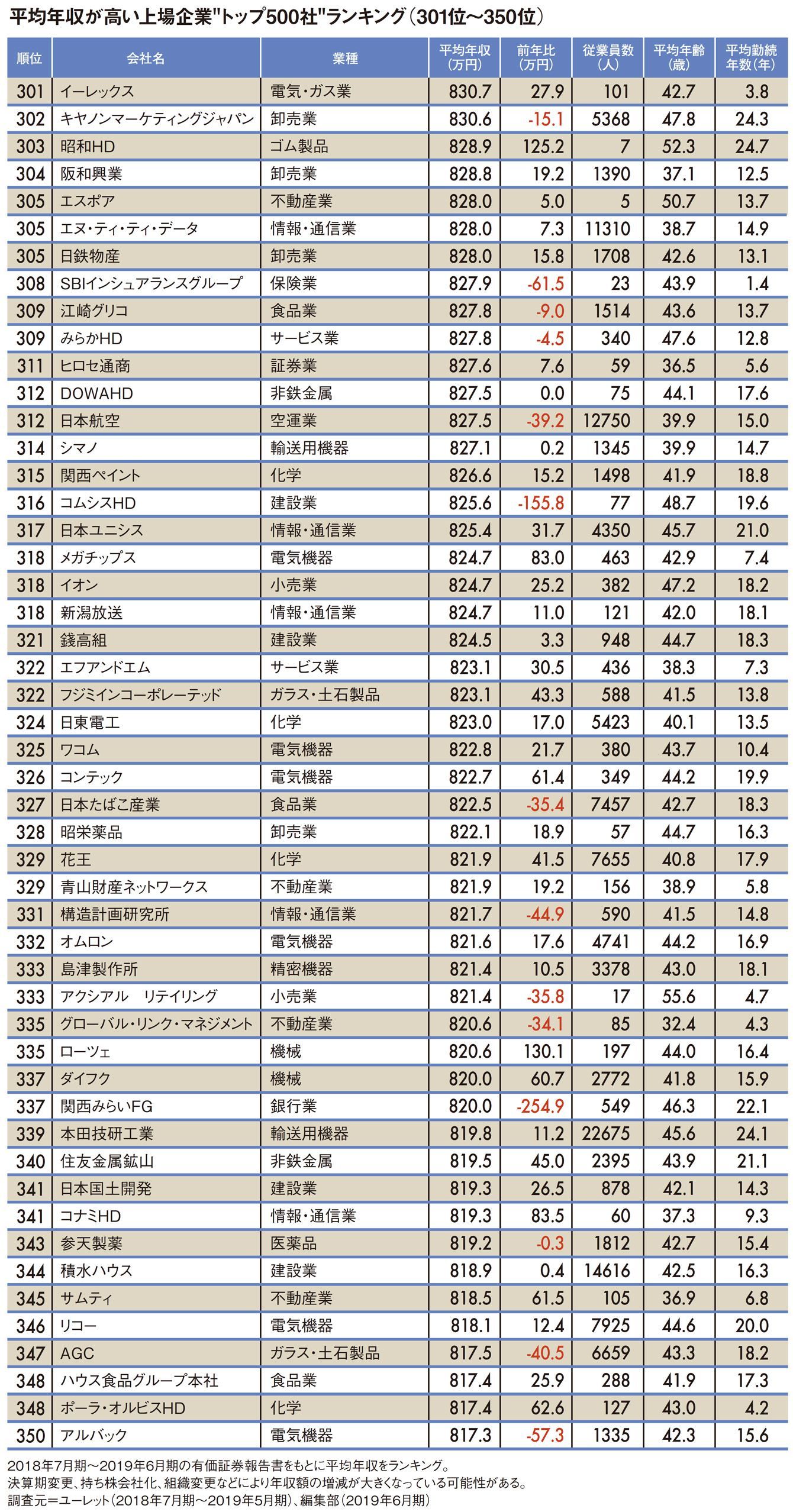 平均年収が高い"トップ500社"ランキング2019