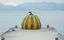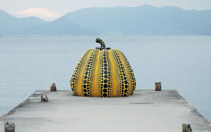 芸術家・草間彌生作「南瓜」=2016年10月28日、香川県直島町