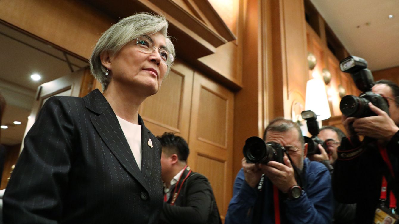 G20外相会議のため会場に入る韓国の康京和外相=2019年11月23日、名古屋市