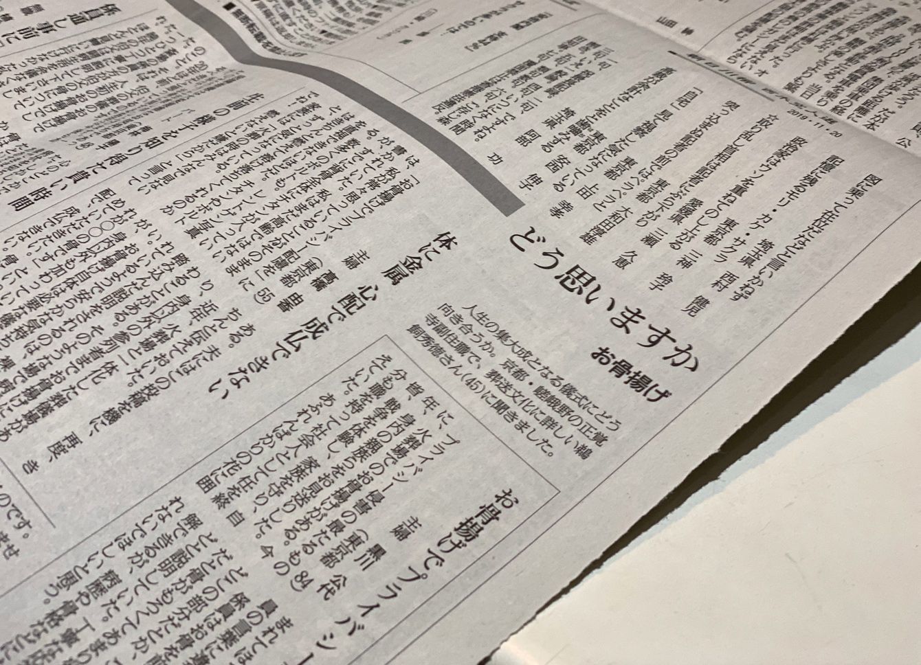 朝日新聞(2019年10月13日付)に掲載された「骨揚げ」の投書