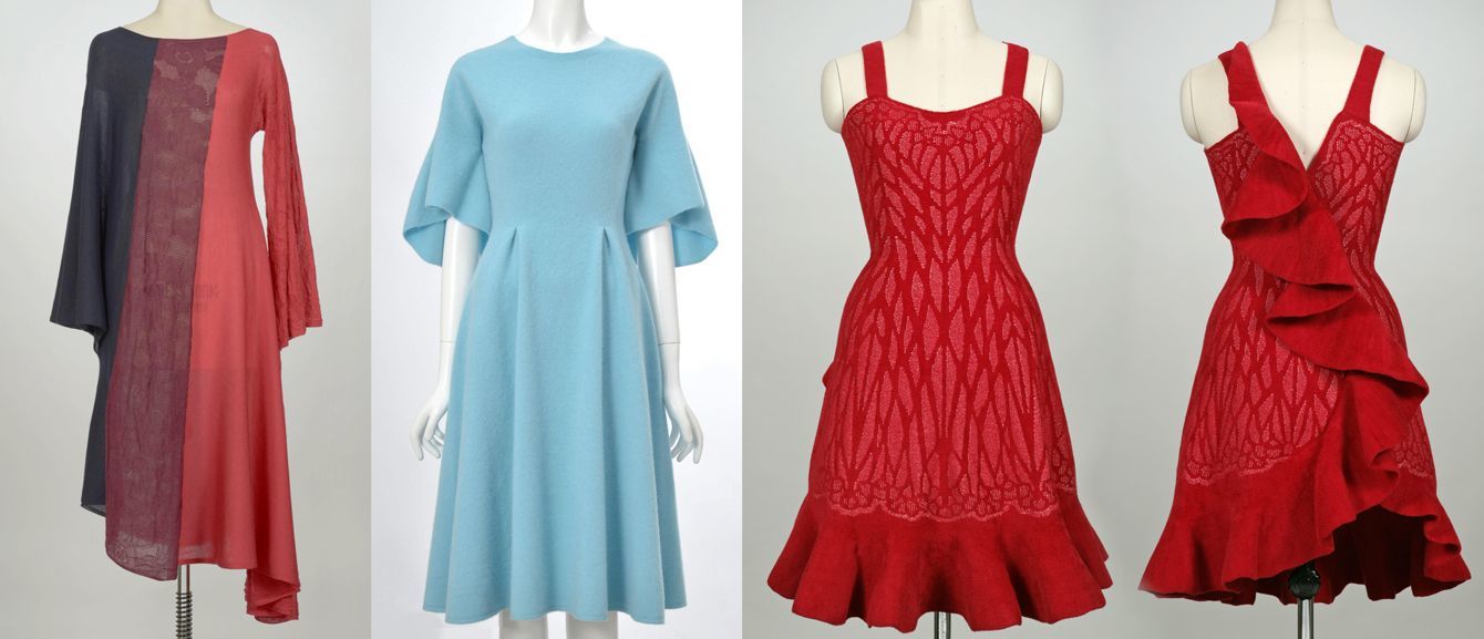 ホールガーメント横編機で編んだ洋服のサンプル。複雑な柄やデザインであっても、糸さえセットすれば、一気に完成品として編み上がる。(画像=『