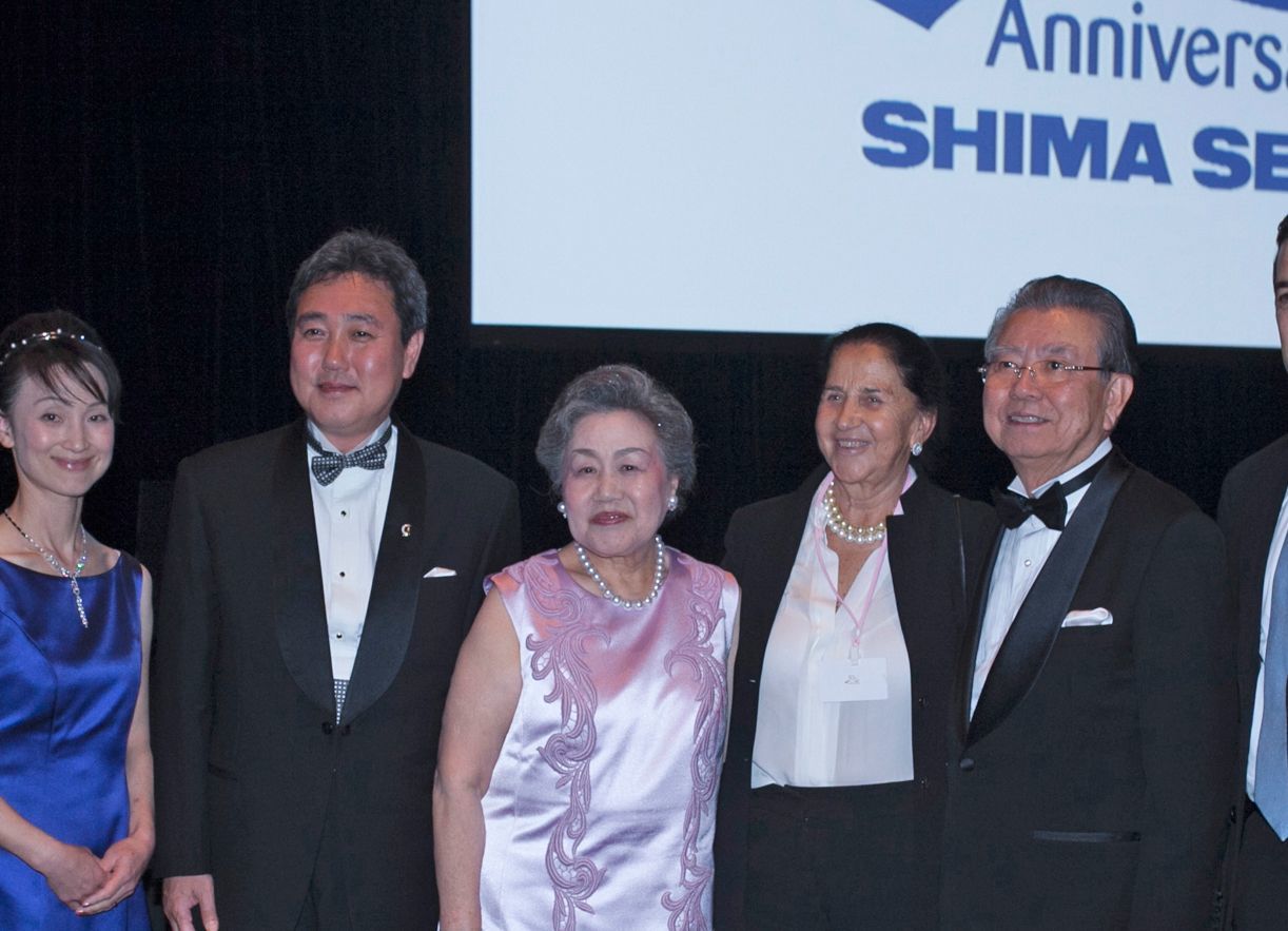 世界的なニットデザイナー、ジュリアナ・ベネトンさん(右から2人目)と。左端は、現・島精機社長である島三博夫妻。中央は故・和代夫人。(画像=『
