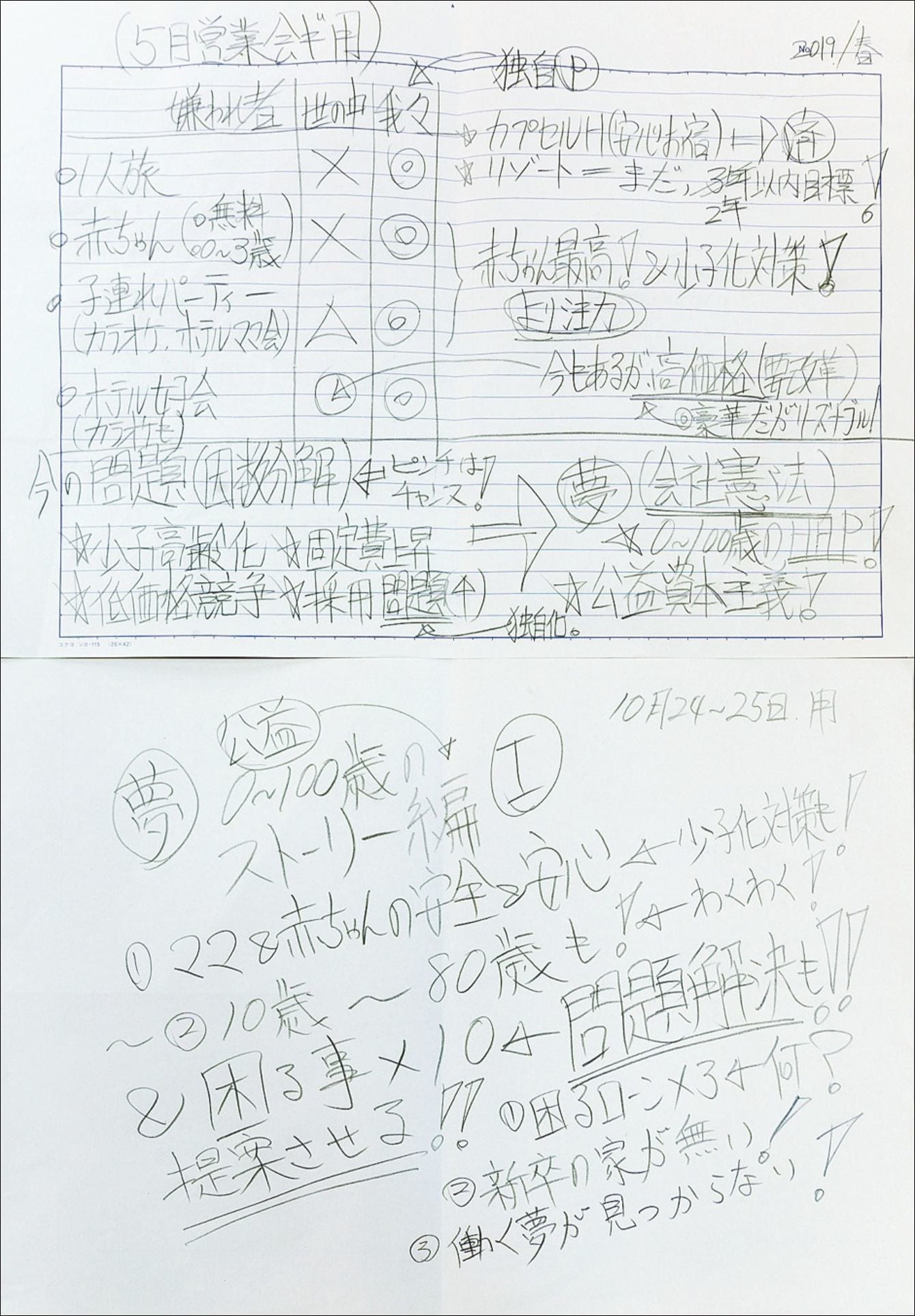 メモ:困っている人こそ、ビジネスチャンス。それを念頭に頭で整理したことをメモに書き出す。書いたメモはぐちゃぐちゃに破り捨てる。