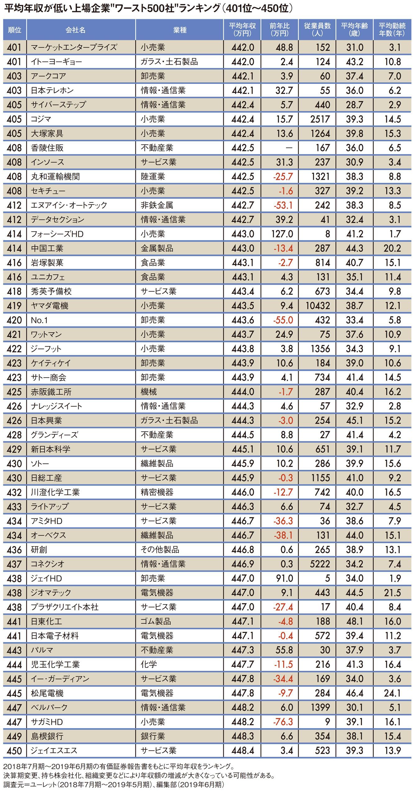 平均年収が低いワースト500社ランキング2019