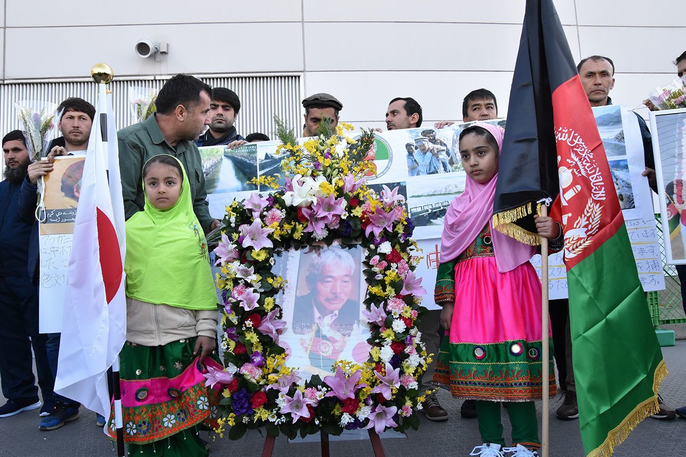 死亡した中村哲医師を出迎えるため福岡空港に集まったアフガニスタン人ら=2019年12月9日、福岡市博多区