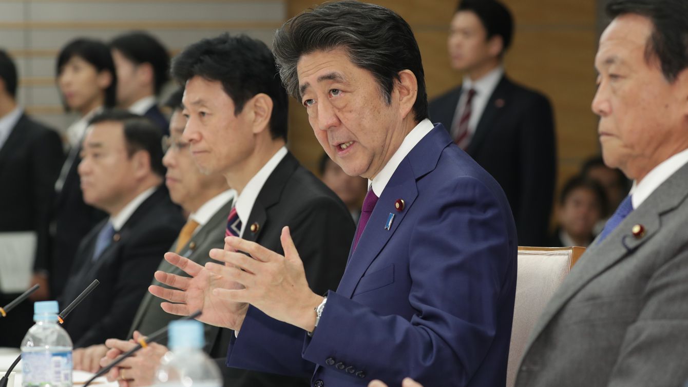 全世代型社会保障検討会議で発言する安倍晋三首相(右から2人目)=2019年11月26日、首相官邸