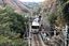 田本駅。断崖絶壁にべったり張り付くホームが印象的。ホームからは駅を見渡せる撮影スポットへの小道がある