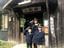 金野駅。駅の看板を触れば金運アップ。停車直後は人だかりができるが、時間がたてば人も減り触り放題になる