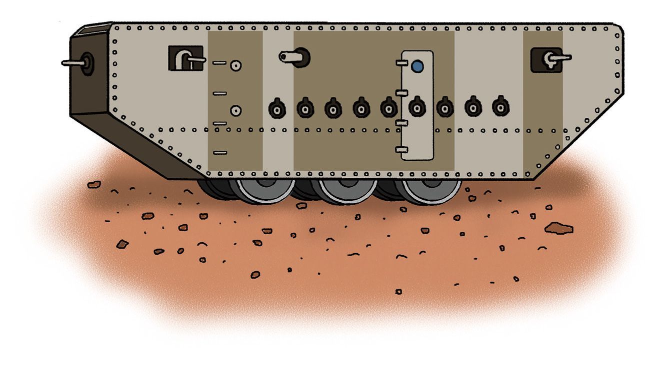 1915年にフランスで開発された最初期の戦車の一つ、フロト・ラフリー。実は坂も登れず、車体左右の武器はなんと「絵」。