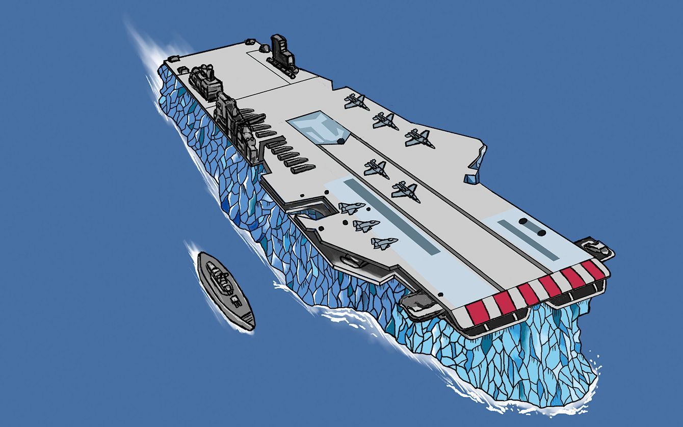 第二次大戦中、イギリスのジェフリー・N・パイク博士が構想した「氷山空母ハボクック」。ほぼ人工島。