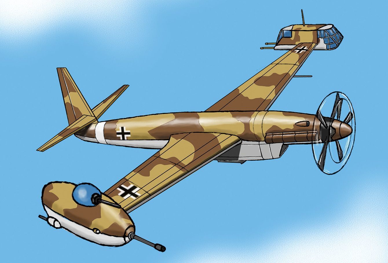 コックピットはどこ? なんと主翼の両端に。BV P.163