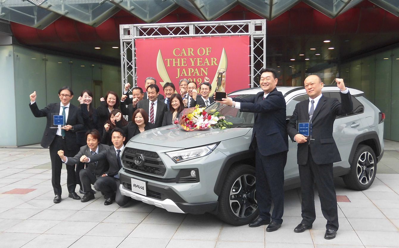今年の「日本カー・オブ・ザ・イヤー」を受賞したトヨタ自動車のスポーツ用多目的車(SUV)「RAV4」=2019年12月6日、東京都江東区