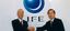 2002年5月、日本鋼管(NKK)と川崎製鉄の経営統合契約書の調印式で握手する半明正之NKK社長と數土文夫川崎製鉄社長(いずれも当時)。