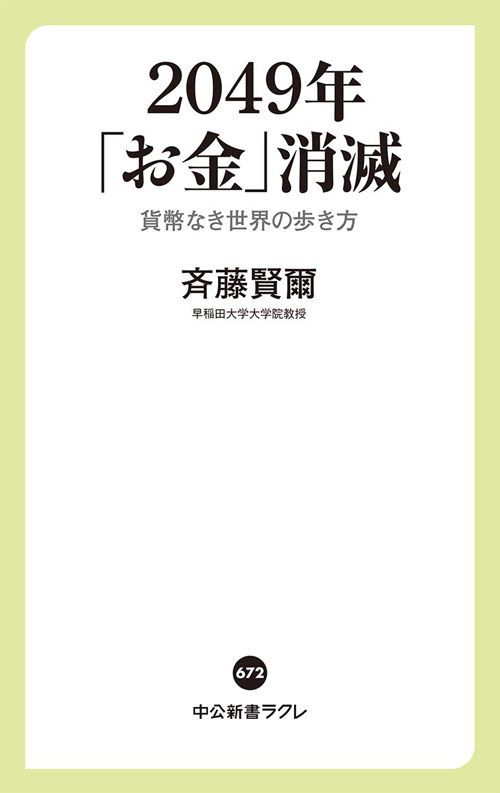 斉藤賢爾『2049年「お金」消滅貨幣なき世界の歩き方』(中公新書ラクレ)