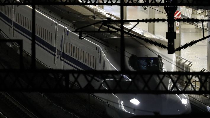 2018年6月10日、新幹線殺傷事件発生後に、JR小田原駅で停車する東海道新幹線「のぞみ265号」