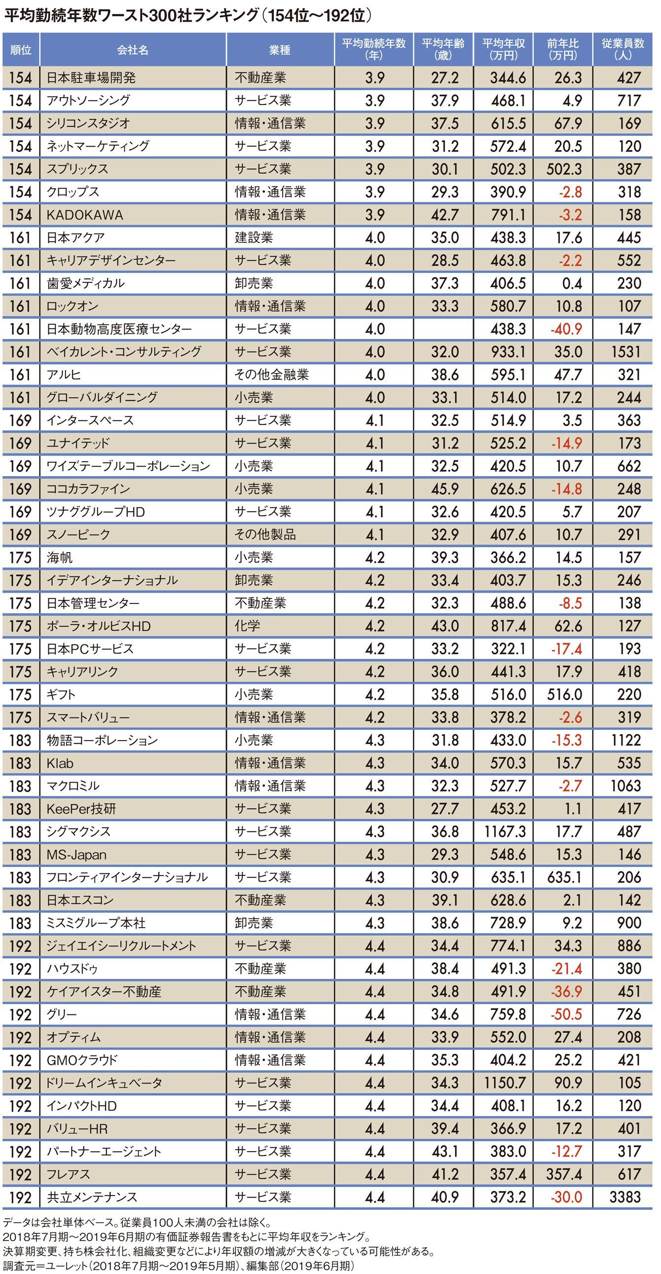 平均勤続年数"ワースト300社"ランキング2019