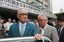 全日本選手権決勝の観戦に訪れた長嶋茂雄氏(手前左)。母校立大の優勝を見届け、ファンに囲まれながら球場を後にする=2017年6月11日、神宮球場