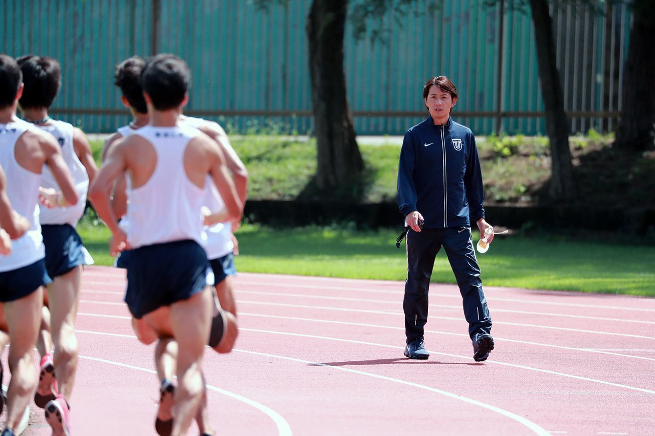 大学のトラックでの練習中の様子。このとき走りだけでなく、細かな選手の変化も観察する
