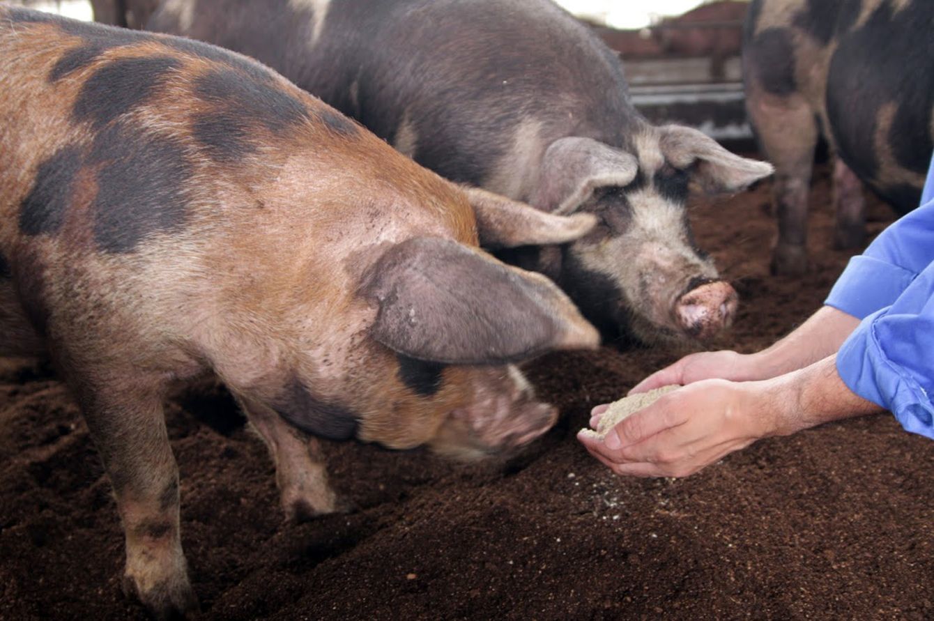 平田牧場が飼育する豚。飼料用米で育てた豚の脂身には甘みとうまみが多く含まれるという