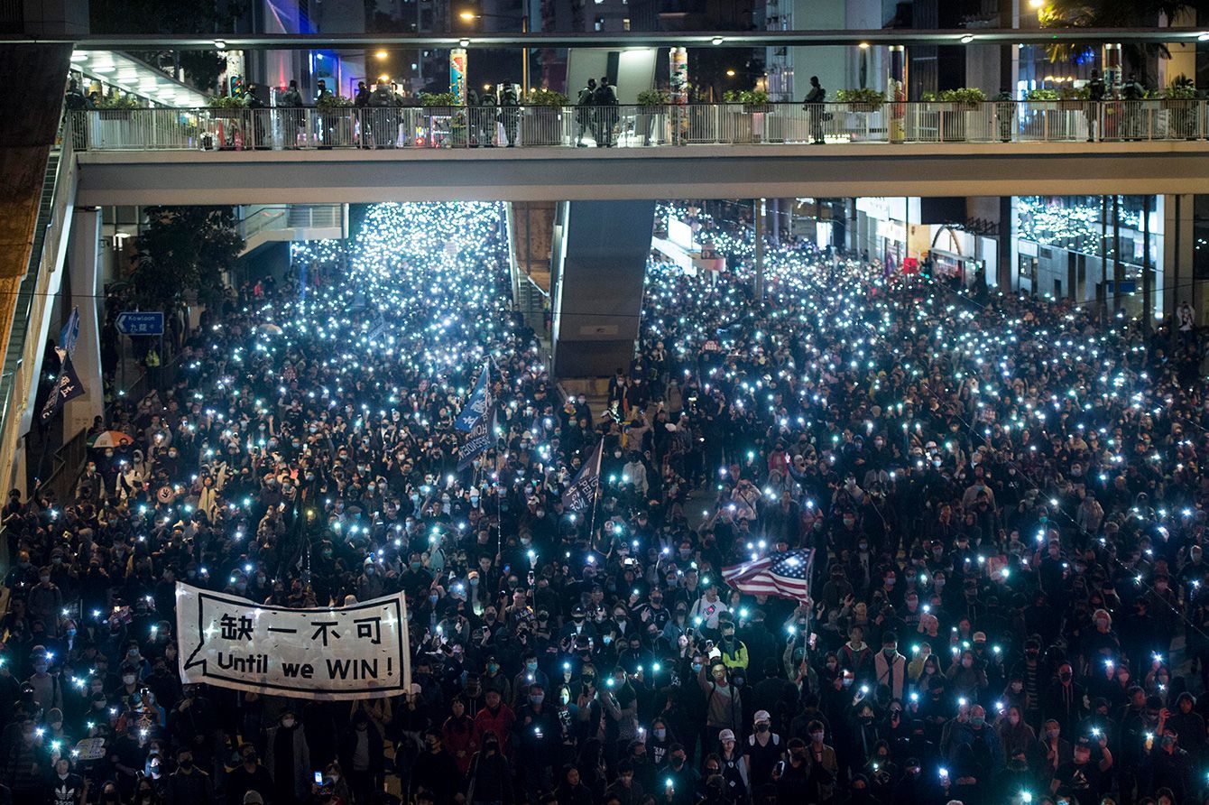 12月8日、日没後も続いたデモ行進
