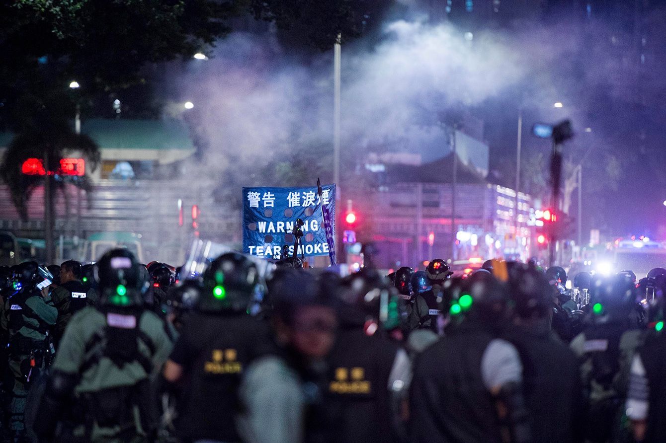 抗議者に対峙する香港警察