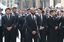 ラグビー・ワールドカップ(W杯)日本大会で初の8強入りを果たした日本代表のパレードを前に、あいさつするリーチマイケル主将(中央、東芝)=2019年12月11日、東京都千代田区