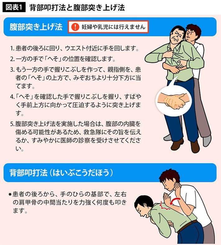 背部叩打(こうだ)法と腹部突き上げ法(ハイムリッヒ法)の解説(ウェブページ「