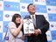 自民党石破派の政治資金パーティーで、参加者と記念撮影する石破茂元幹事長(右)=2019年5月13日、東京都千代田区