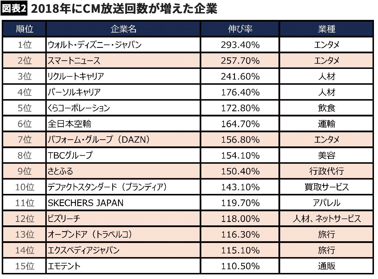 2018年にテレビCMが増えた企業・商品TOP30ランキング