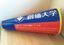 応援用メガホンと注意書き(下部)。創価にもポリコレの波が。