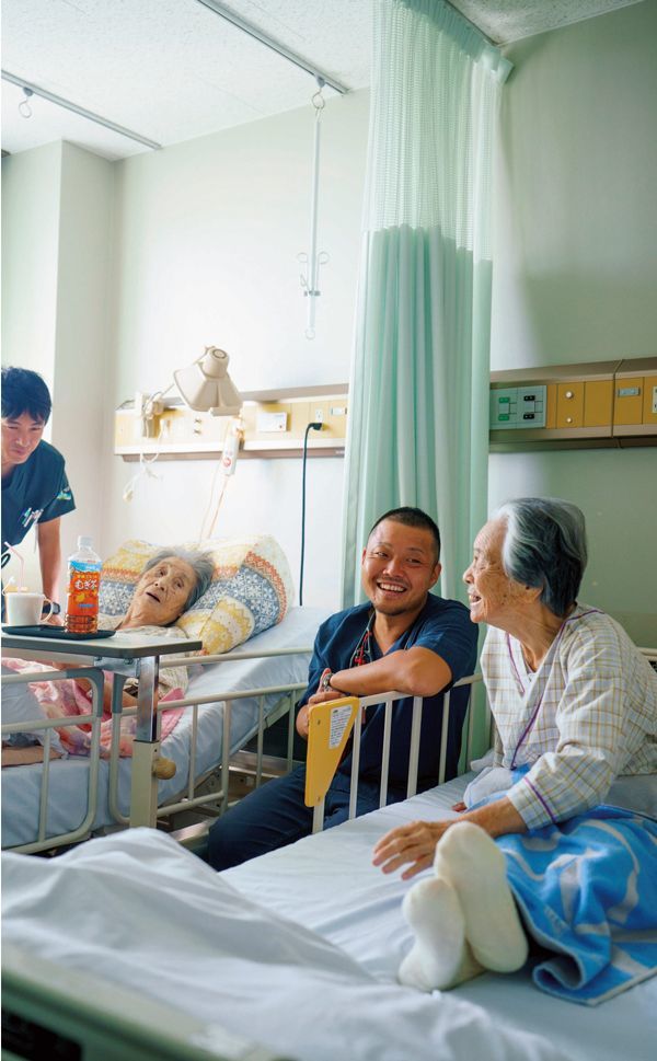 高齢の患者と歓談する、江角院長(撮影=堀 隆弘)