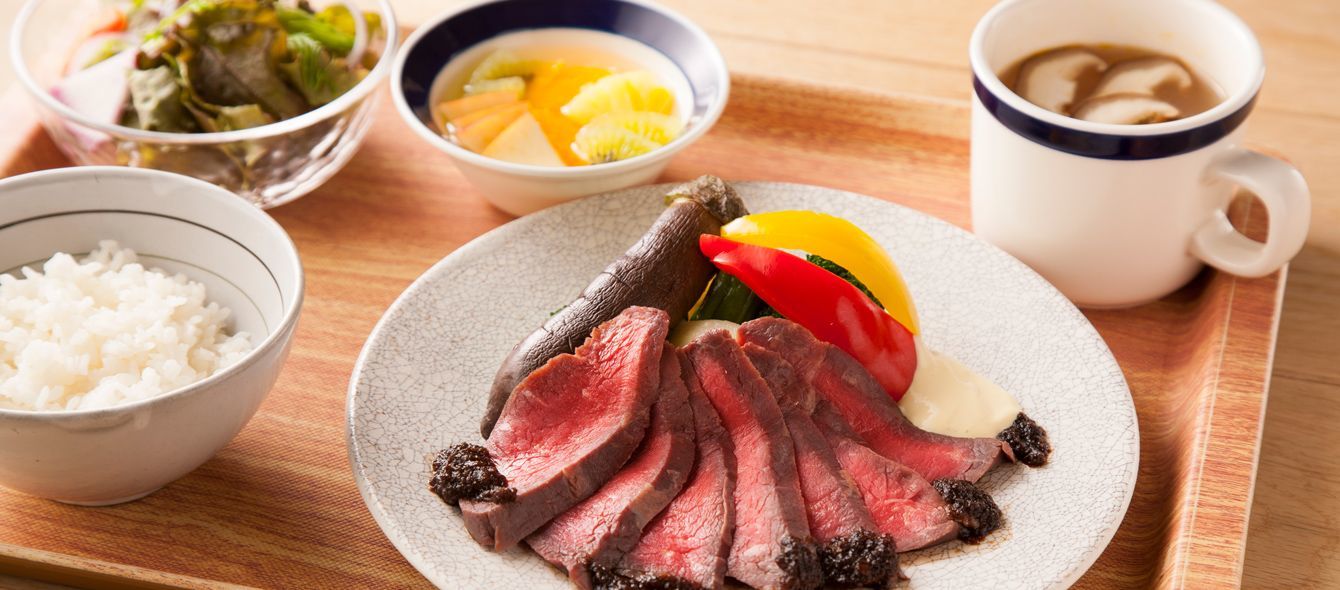丸の内タニタ食堂で提供している洋食ごはんのローストビーフ。